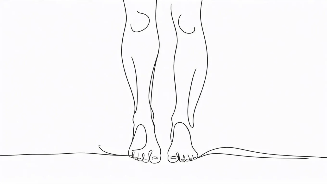 Create minimalist continuous line art of two bare feet with smooth curves, symbolizing connection and intimacy. This abstract black-on-white illustration uses a single unbroken stroke for simplified forms, blending contemporary line drawing techniques with emotional resonance. Ideal for modern decor or symbolic projects emphasizing unity through minimalist, detail-free artistry.