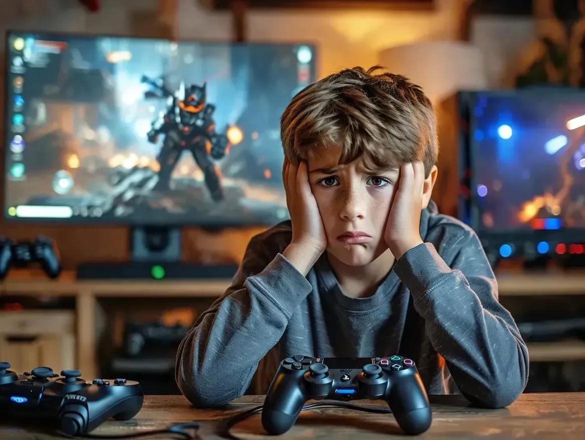 Create AI-generated visuals of stressed children overwhelmed by video games. Capture emotional tension, digital stress, and gaming obsession with realistic AI effects. Transform prompts into vivid images/videos showcasing youth anxiety from excessive gaming. Perfect for content on modern childhood, screen addiction, or mental health awareness. Elevate your projects with professional AI tools.