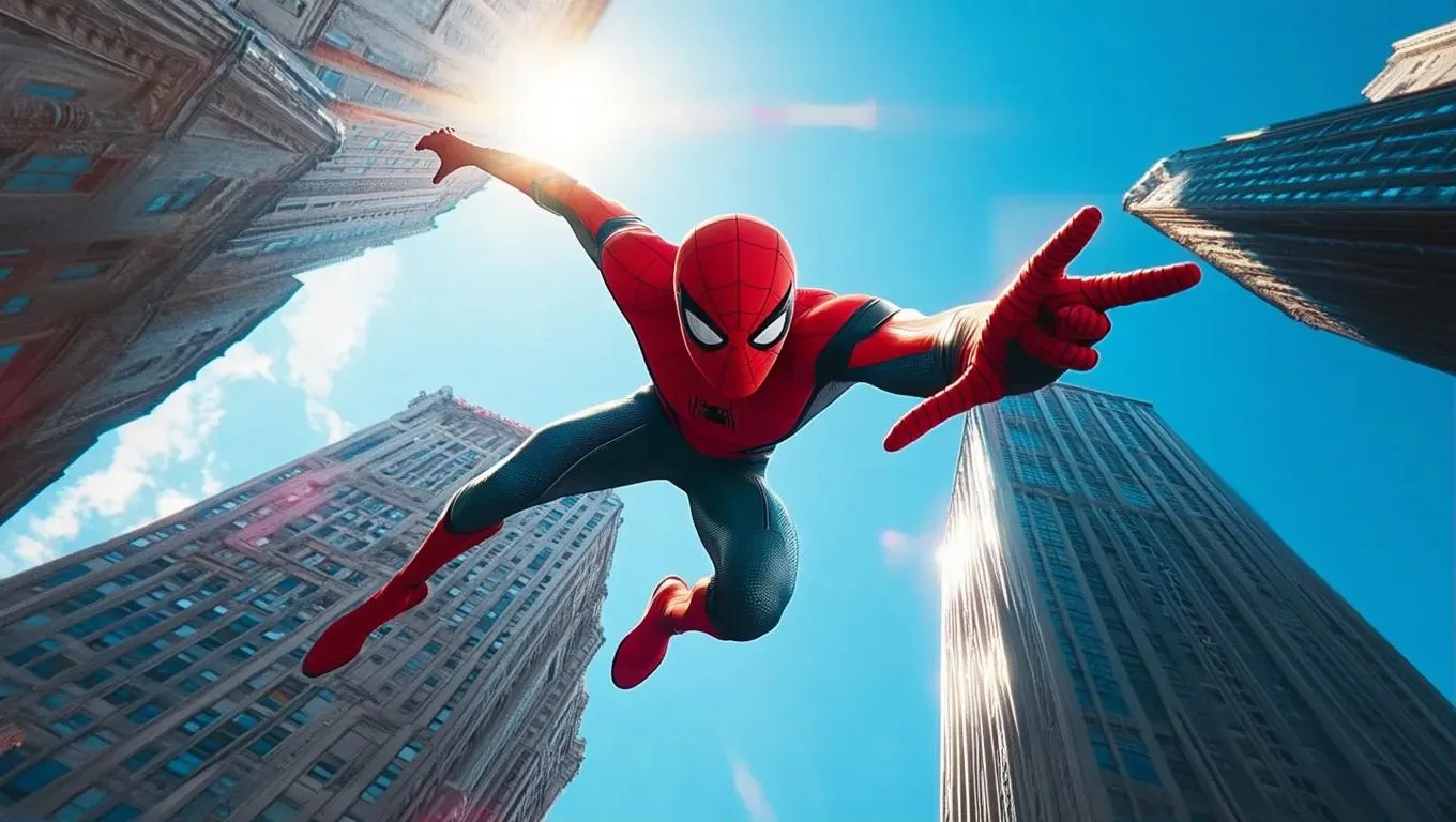 Generate cinematic low-angle shots of Spider-Man swinging through skyscrapers with AI-powered precision. Ultra-realistic superhero visuals feature vibrant colors, dynamic poses, and dramatic lens flares against detailed cityscapes. Perfect for modern film aesthetics, this effect transforms text prompts into sharp-focused action scenes with professional-grade quality on Vivago.ai's creative platform.