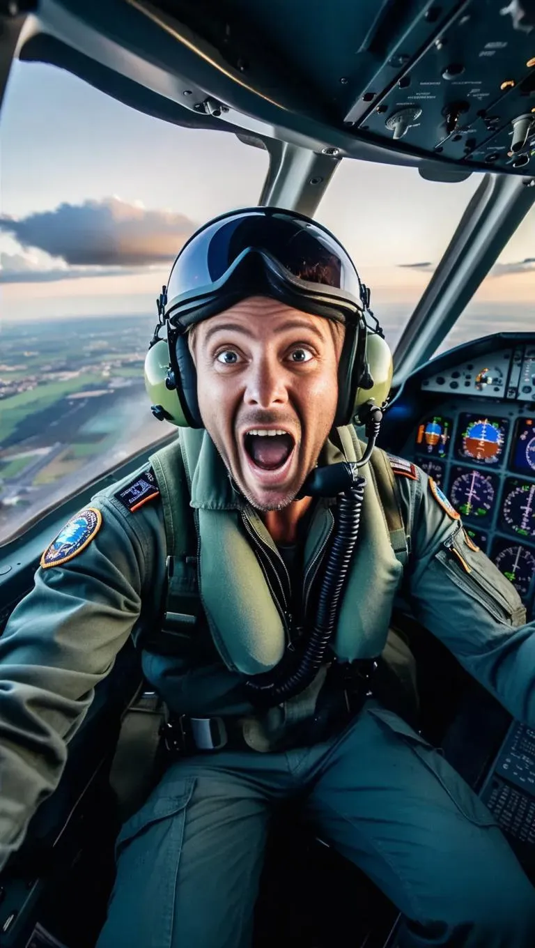 Capture intense AI-generated aviation scenes with a panicked pilot in a cockpit crisis. vivago.ai transforms prompts into hyper-realistic, high-stress visuals using advanced AI image/video tools. Craft dramatic, professional-grade aviation content with curated effects and immersive editing features.