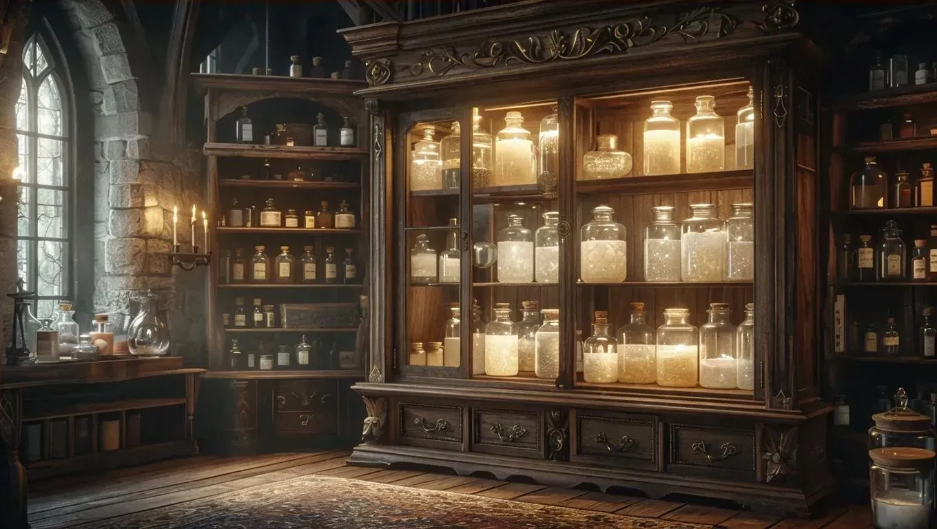 Transform your creative vision into stunning visuals with Vivago.ai's AI image generator. Craft a cabinet brimming with jars of white sticky liquid, rendered in hyper-realistic detail. Explore curated AI effects and professional editing tools to enhance textures, lighting, and composition for captivating, professional-grade results.