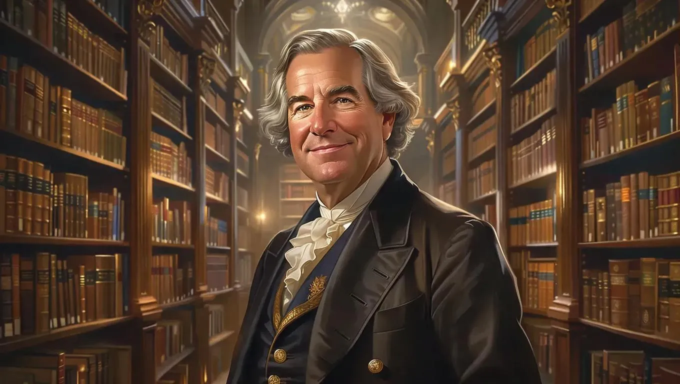 Explore AI-generated art of L. Ron Hubbard in a mystical library, surrounded by glowing ancient tomes and ethereal light. This captivating portrait blends wisdom, intrigue, and tailored sophistication, evoking cosmic discovery. Unleash AI creativity to visualize enigmatic settings where secrets of the universe meet visionary personas.