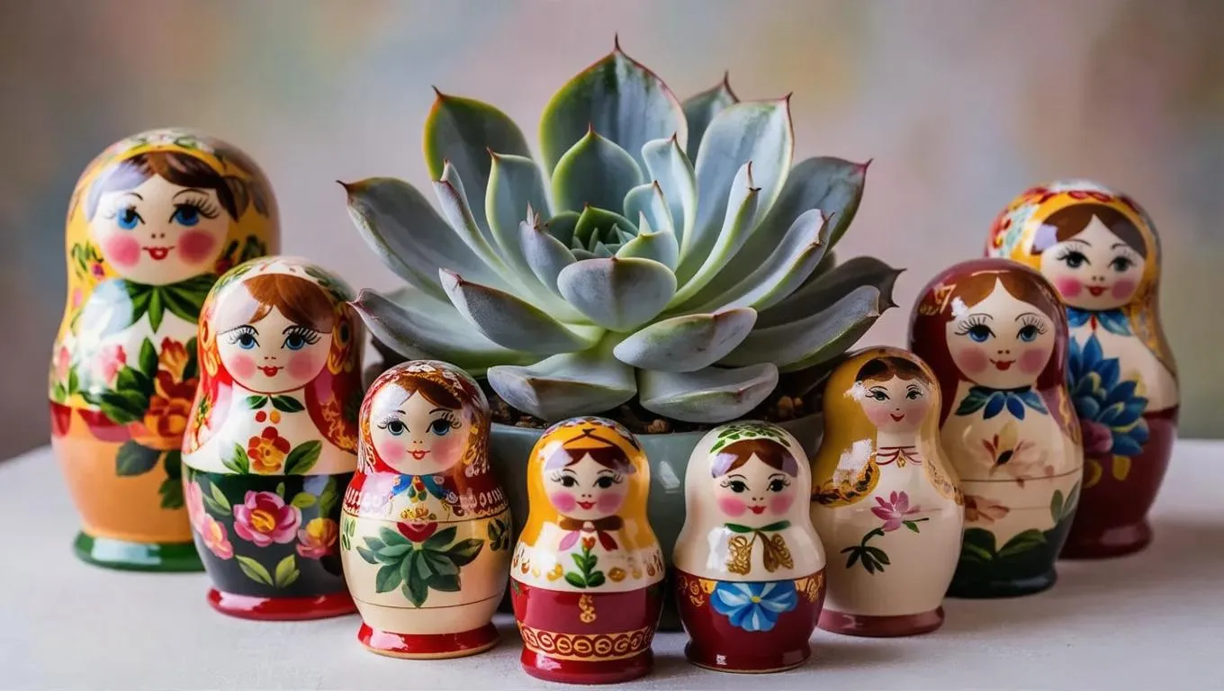 Discover AI-generated Matryoshka dolls with nested aeonium succulents. Transform text prompts into intricate, layered designs using vivago.ai's creative tools. Perfect for botanical art, surreal visuals, or unique storytelling. Enhance your projects with professional-grade AI effects for striking, nature-inspired nesting doll imagery.