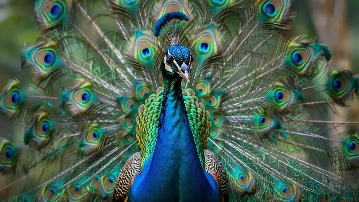 Generate a vivid peacock image with AI, capturing the majestic bird's colorful plumage gazing at the camera from afar. Perfect for zoo-themed visuals, this AI-generated art transforms text prompts into striking animal portraits with detailed backgrounds and lifelike textures. Ideal for creative projects and professional designs.