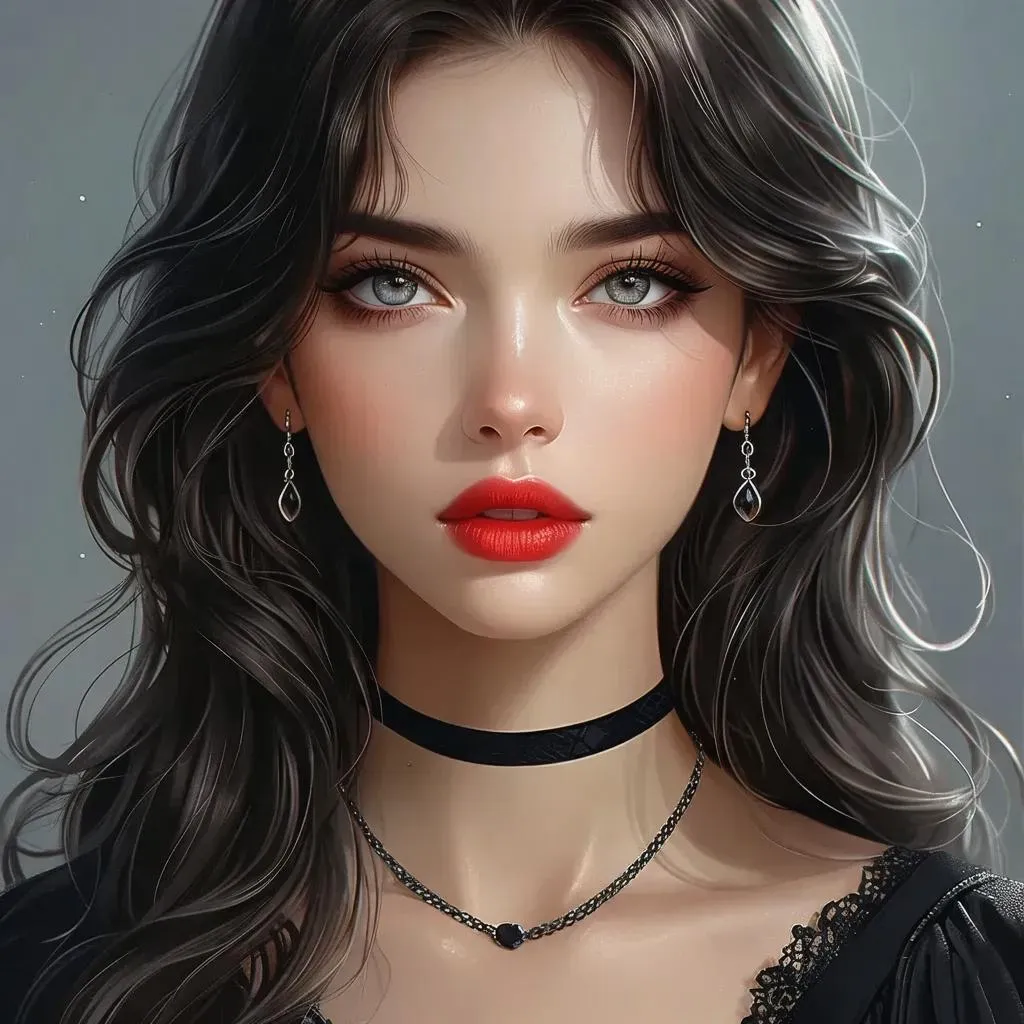 Create stunning AI anime art with Vivago.ai's text-to-image generator. Design a high-detail, 8k resolution sad anime girl featuring brown hair, grey eyes, red lips, and black/white attire. Enhance with glow-in-the-dark effects, intricate jewelry, and dark thematic elements for emotionally expressive, professional-grade character illustrations. Perfect for anime-style storytelling and visual artistry.